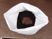 シマミミズ500g(1,250匹)は、袋の中身(シマミミズと一緒に土のう袋に入れた湿らせたミミズふん(微生物がたくさん付着した状態)+ヤシ繊維6〜8リットル(微生物がたくさん付着した状態)にミミズをもぐらせ、裂いた新聞紙を敷いたダンボールにお入れして発送します。)